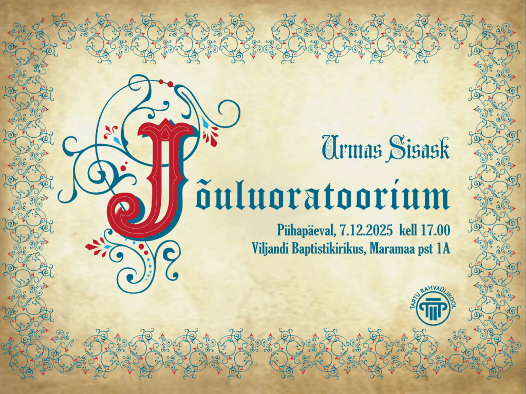 Urmas Sisaski jõuluoratoorium Viljandi Baptistikirikus 7.12.2025 ja 13.12.2025 Tartu Jaani kirikus